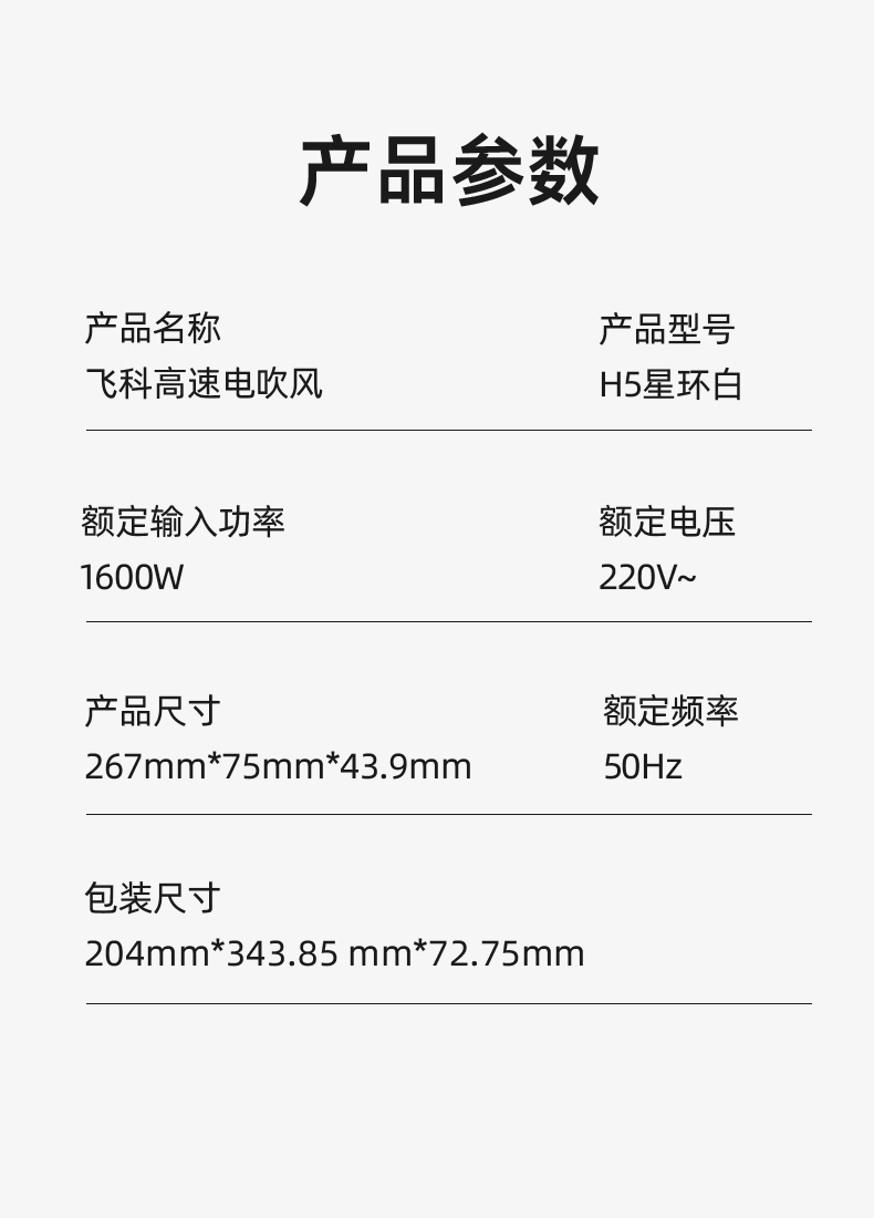 【王一博推薦】飛科星環高速吹風機H5星環白