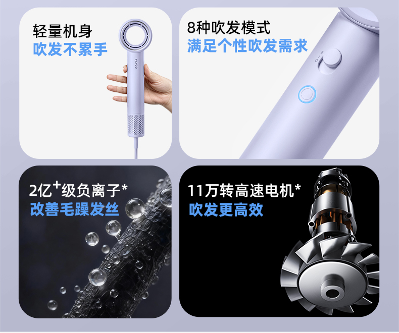 【王一博推薦】飛科星環高速吹風機H5星環紫