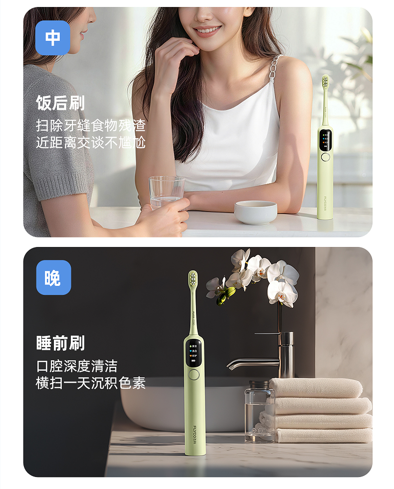 【520限定禮袋】飛科掃振一體電動牙刷T1靈動黃