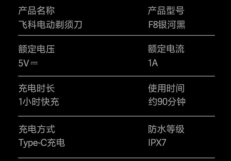 飛科新一代往復式攜帶型刮鬍刀F8銀河黑
